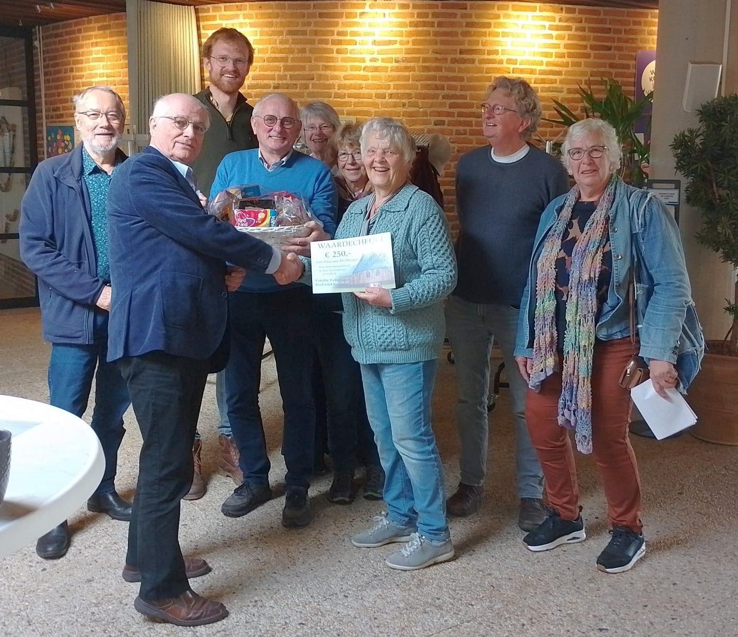 Zo hebben we een cheque van 250 euro mogen meegeven aan een groepje uit Wesepe dat op 29 september een bezoek bracht aan het Kerkasiel in Kampen waar de familie Babayants al meer dan een jaar ‘opgesloten’ zit in de kerk. Door er 24 uur per dag een dienst te houden kunnen zij niet worden opgepakt en uitgezet naar Oezbekistan. Ook ‘onze’ Reinier Gosker gaat er regelmatig voor en, voorafgaand aan zijn dienst daar, werd de cheque overhandigd waar ze erg blij mee waren.